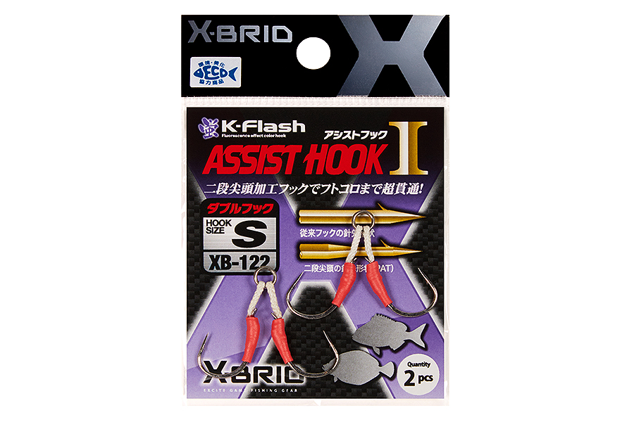 Двойной ассистхук от Morigen для оснащения легких пилькеров (джигов). Крючки связаны на неразрезном кольце по отдельности и могут разворачиваться в разные стороны, что при поклевке улучшает засекаемость рыбы. Применяется, как основной или дополнительный крючок на приманке.