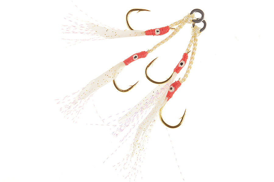 Оснащенный силиконой приманкой и люрексом двойной ассистхук от Asari. Отлично подойдет для оснащения пилькеров для береговой или бортовой рыбалки. Может использоваться, как основной, так и вспомогательный крючок.