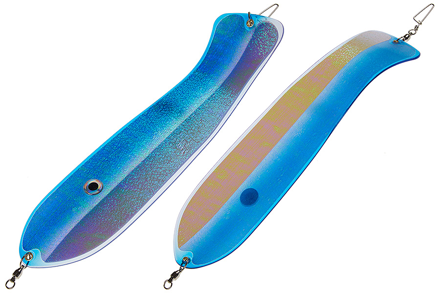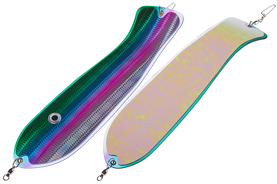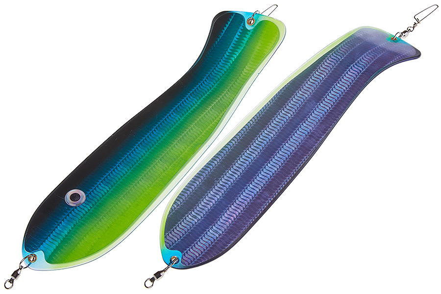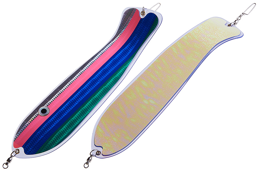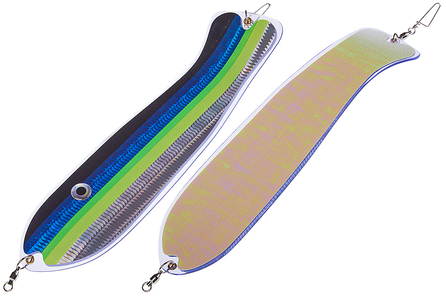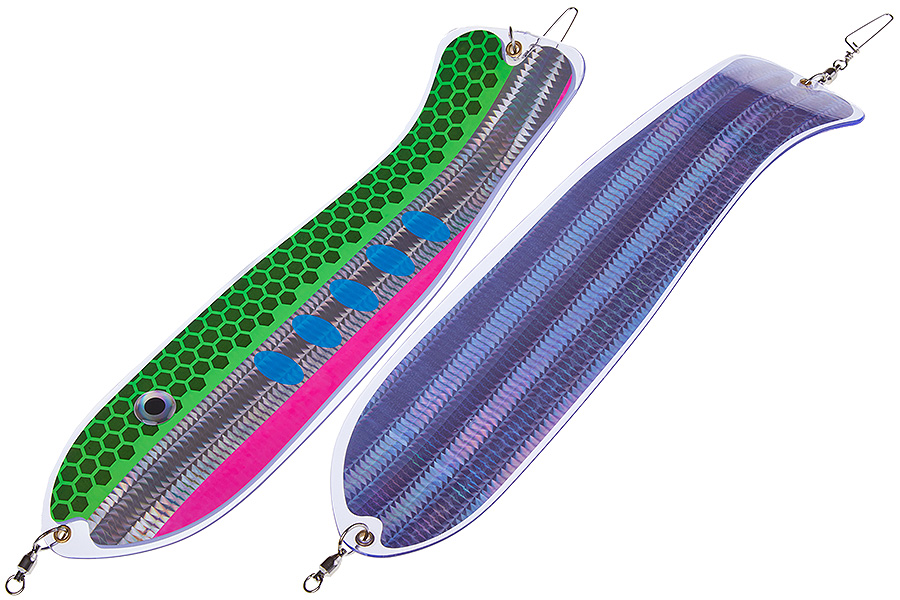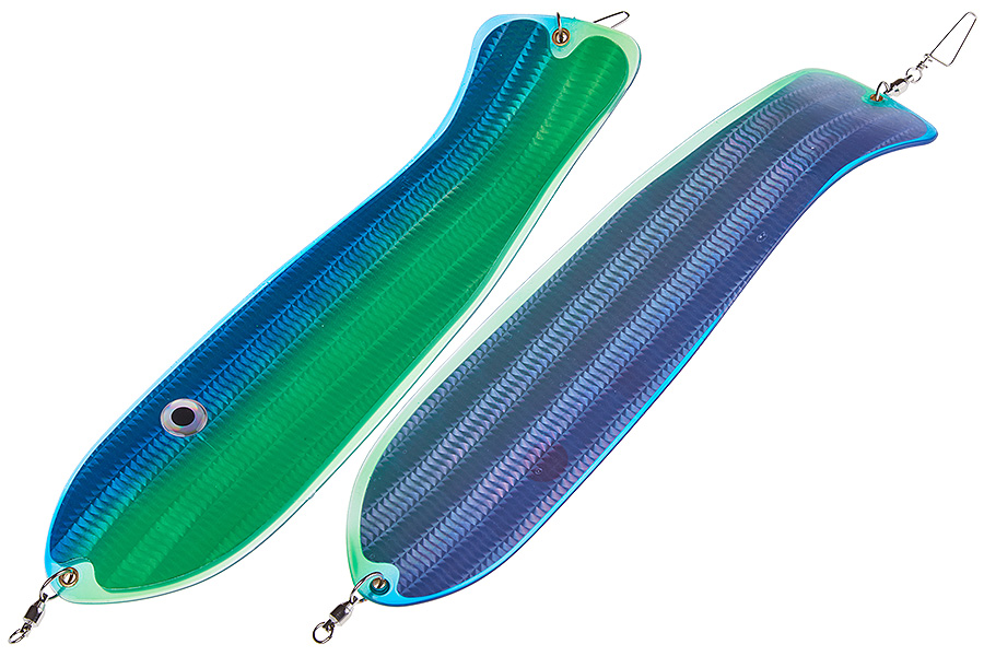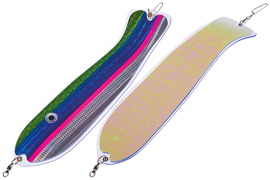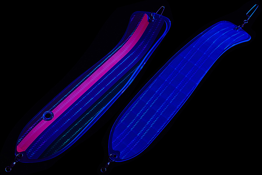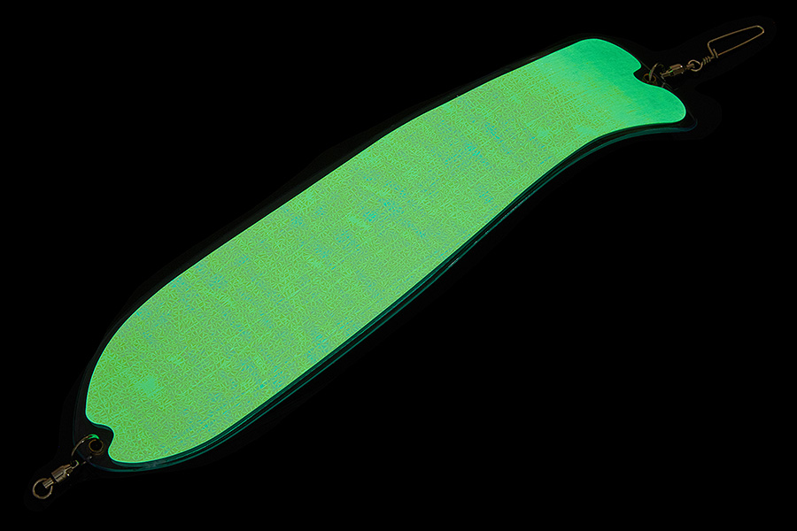 Флешер в форме рыбы прекрасно привлекает лосося на расстоянии. При изготовления тела флешера используется пластик с добавлением пигмента, который светится голубым в ультрафиолете (при дневном солнечном свете). Различные по цветам наклейки предназначены для разнобразных погодных условий. Светонакопительные для утра или пасмурной погоды, также они могут работать в мутной воде. Флуоресцентные цвета могут хорошо работать в солнечные дни. Качественная морская фурнитура позволит ловить не опасаясь за потерю снастей.