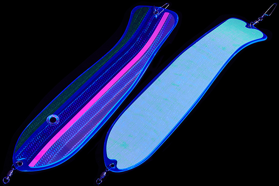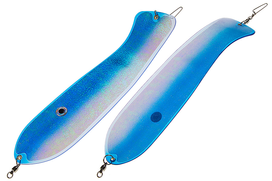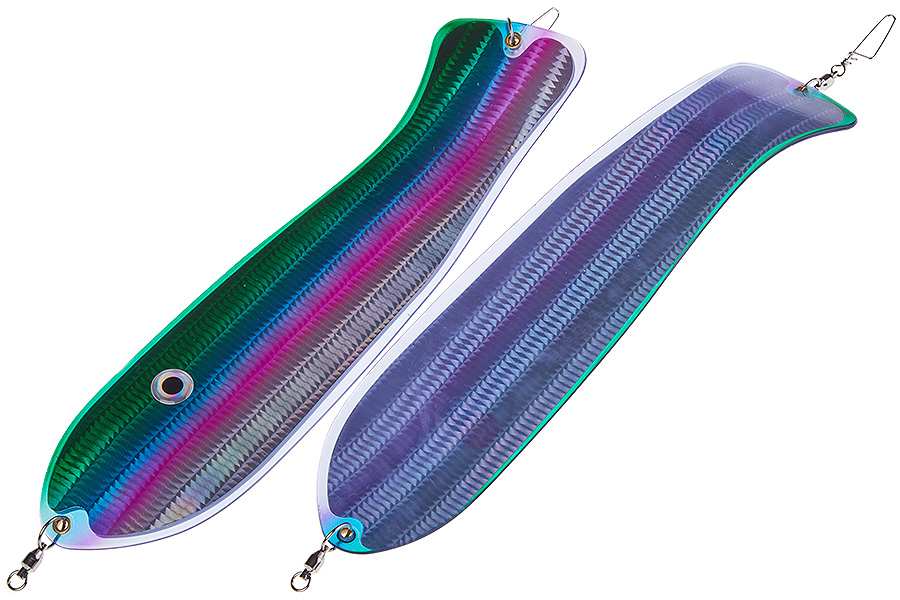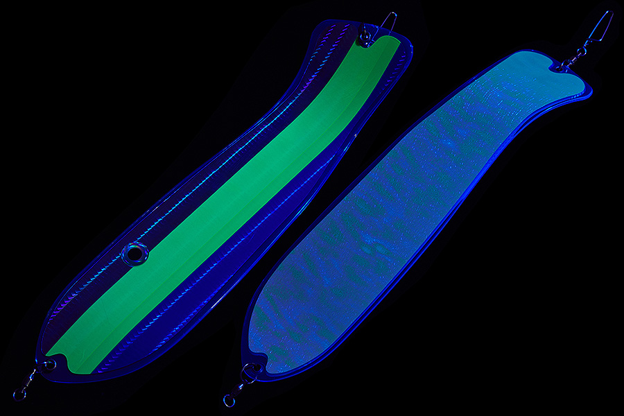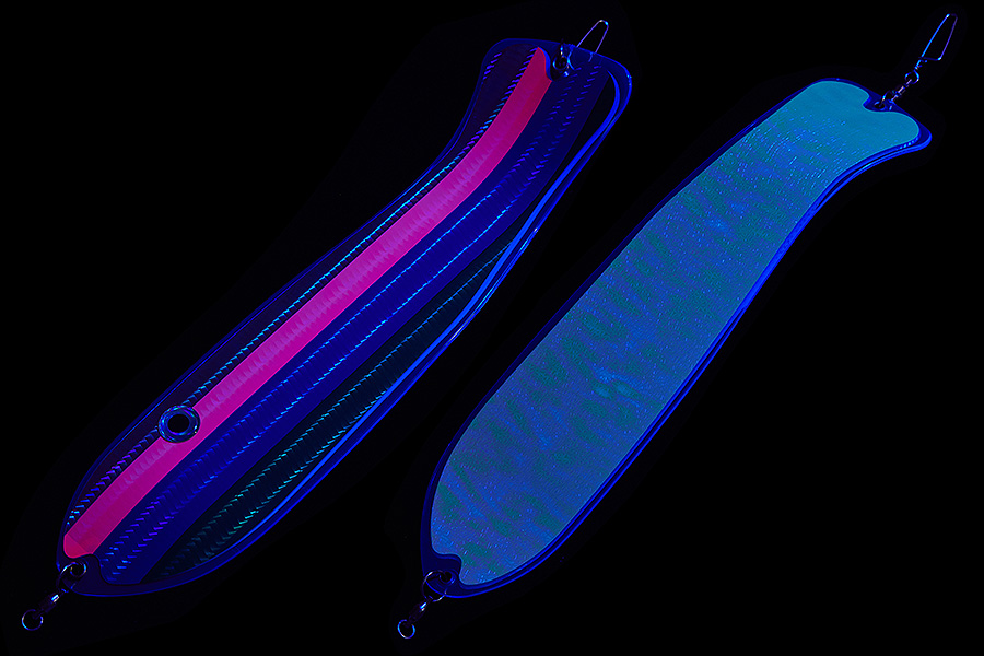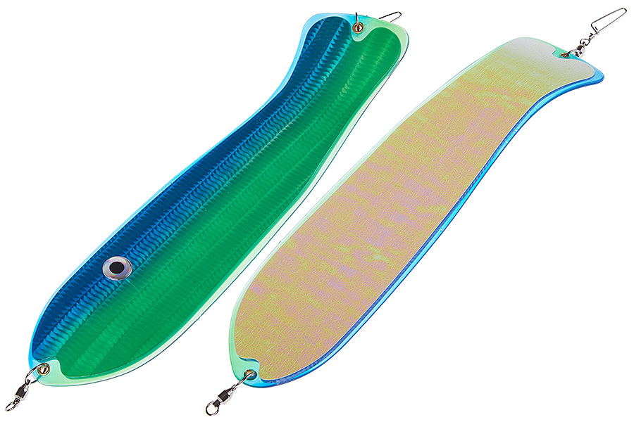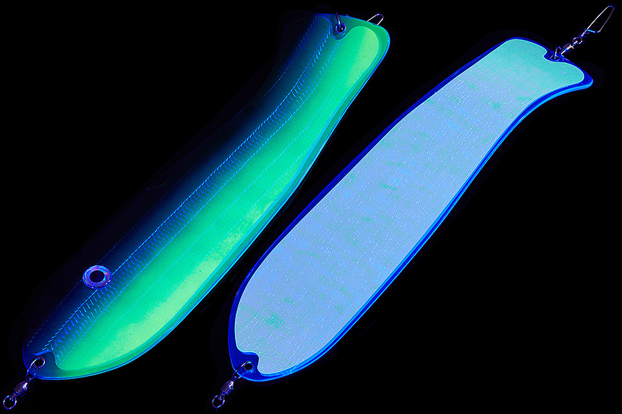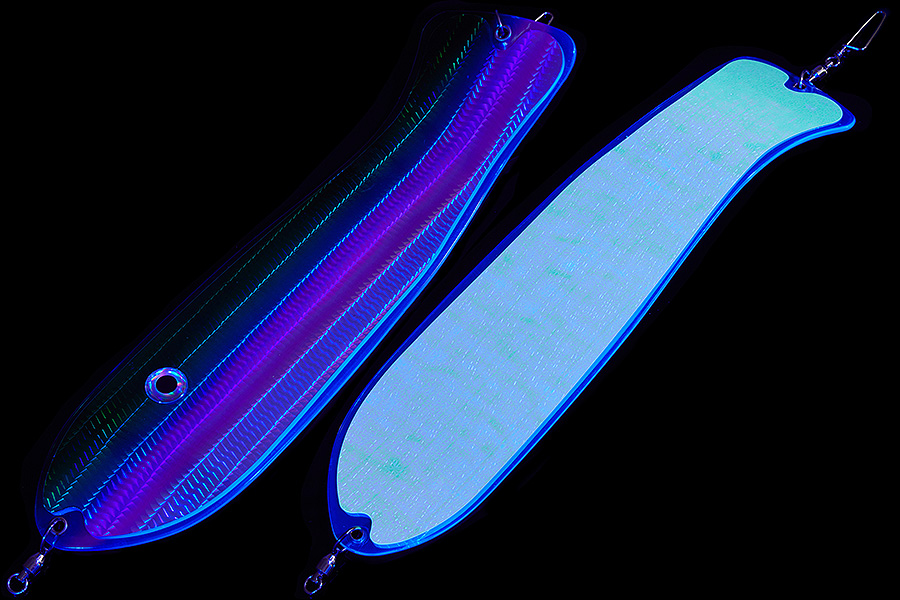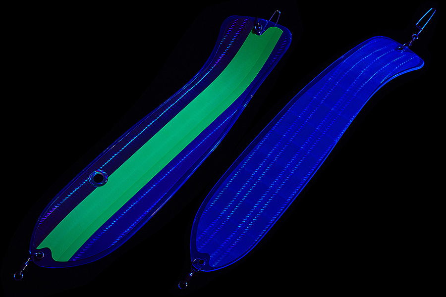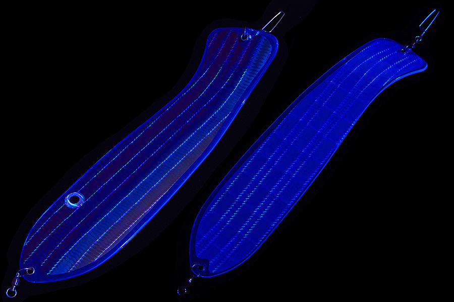 Флешер в форме рыбы прекрасно привлекает лосося на расстоянии. При изготовления тела флешера используется пластик с добавлением пигмента, который светится голубым в ультрафиолете (при дневном солнечном свете). Различные по цветам наклейки предназначены для разнобразных погодных условий. Светонакопительные для утра или пасмурной погоды, также они могут работать в мутной воде. Флуоресцентные цвета могут хорошо работать в солнечные дни. Качественная морская фурнитура позволит ловить не опасаясь за потерю снастей.