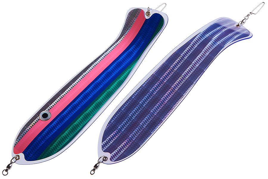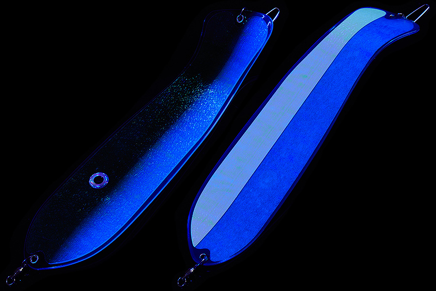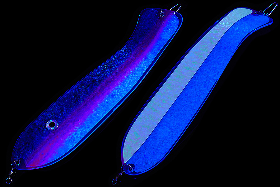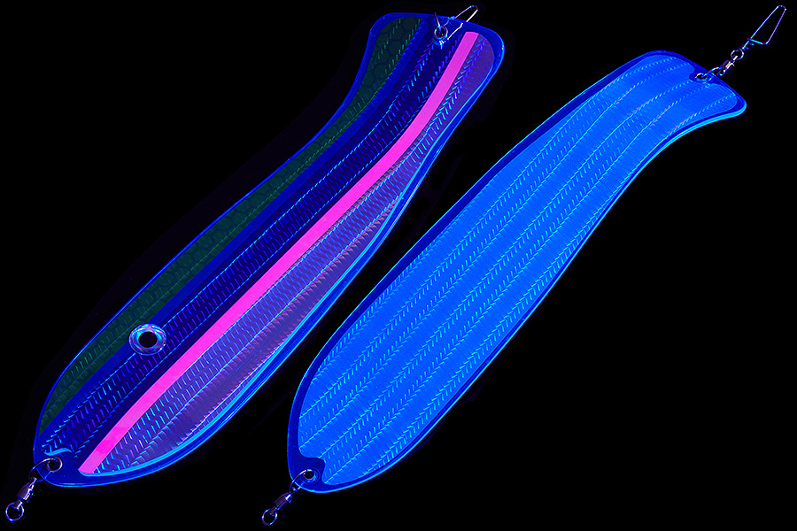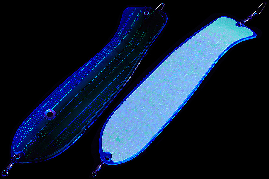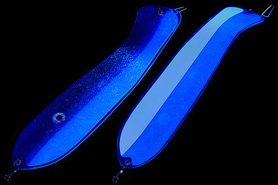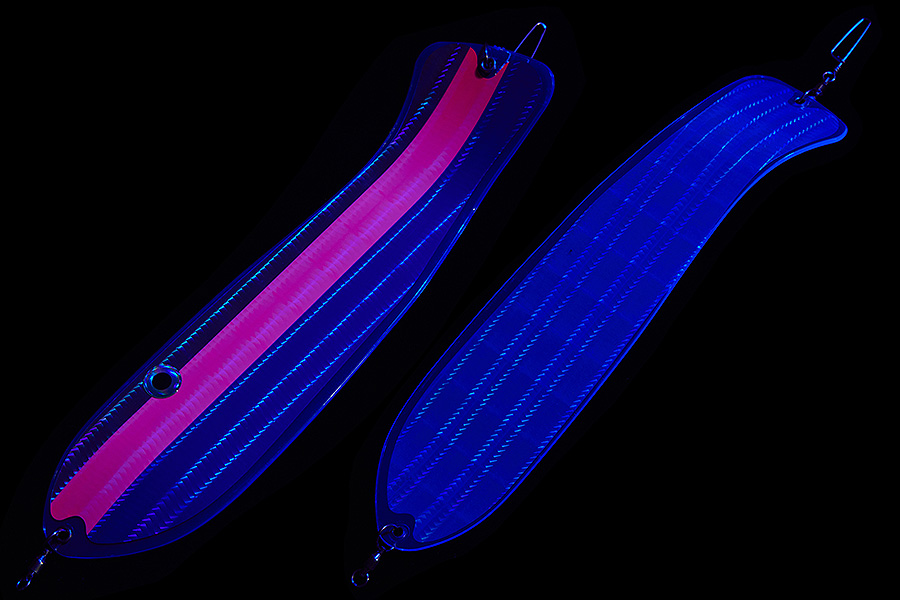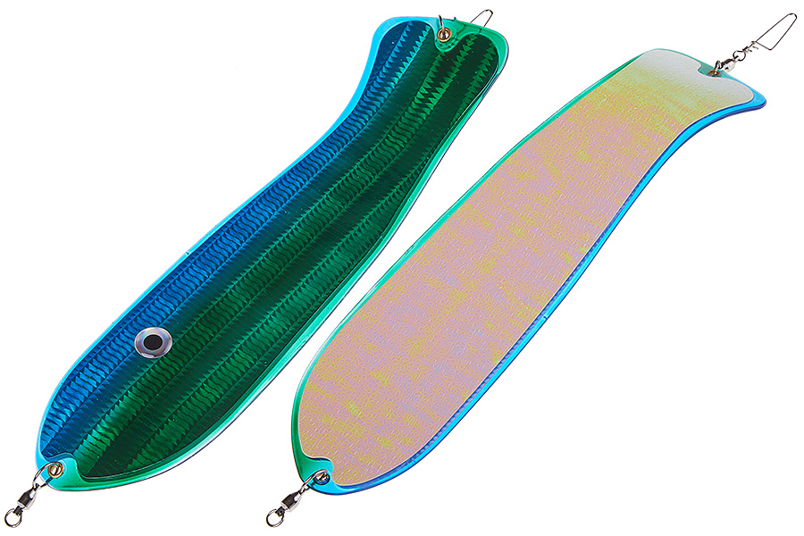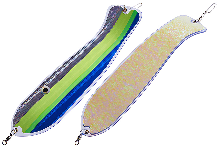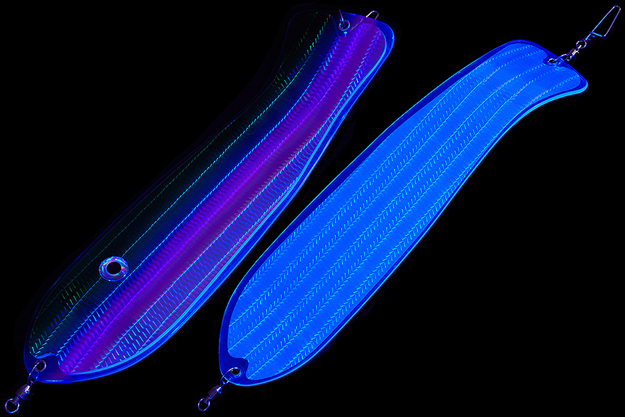 Флешер в форме рыбы прекрасно привлекает лосося на расстоянии. При изготовления тела флешера используется пластик с добавлением пигмента, который светится голубым в ультрафиолете (при дневном солнечном свете). Различные по цветам наклейки предназначены для разнобразных погодных условий. Светонакопительные для утра или пасмурной погоды, также они могут работать в мутной воде. Флуоресцентные цвета могут хорошо работать в солнечные дни. Качественная морская фурнитура позволит ловить не опасаясь за потерю снастей.