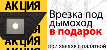 Палатка имеет 2 входа, 4 окна и 2 вентиляционных отверстия. Окна на липучках, съемные. Опционально окно можно заменить врезкой под дымоход для вывода трубы печи.
